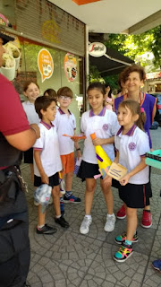 Despedimos a séptimo grado de su escuela primaria... todos los alumnos y docentes de la escuela preparamos un puente humano a través del pasillo y los egresados pasaron por el mismo... en la puerta sus familias los esperaban con espuma, alegría, papel picado y mucho ruido. Luego nos fuimos al Parque para pasar una tarde al aire libre.